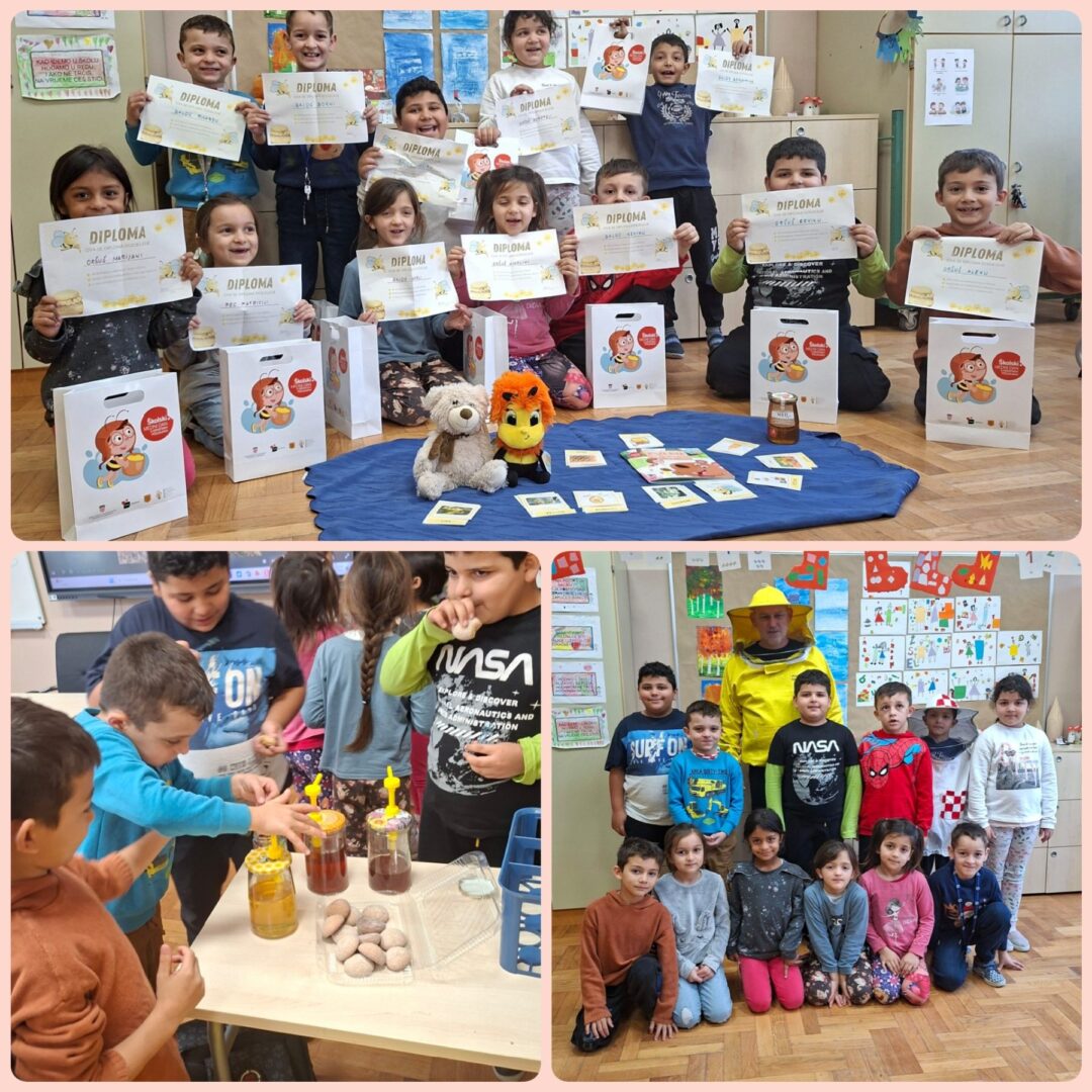 Nakon razgovora i demonstracija, učenici su kušali med i medenjake, čitali slikovnicu Pčelica Jelica i medo Edo te sudjelovali u edukativnim igrama vezanima uz pčele i pčelarstvo.